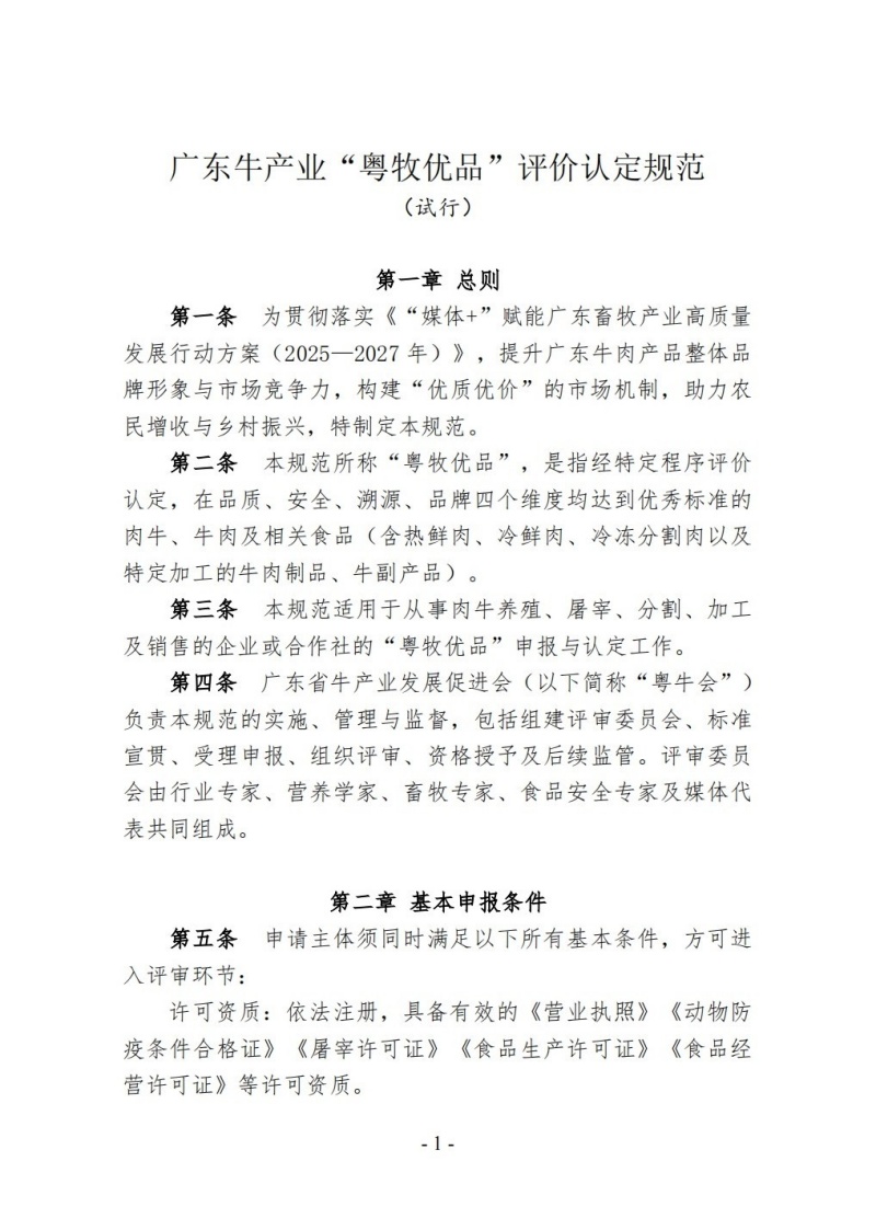 《广东牛产业“粤牧优品”评价认定规范》(试行)管理办法所明确的基本申报条件、评价指标与评分标准、认定流程、监督管理与退出机制等具体细节,引起行业的广泛关注。