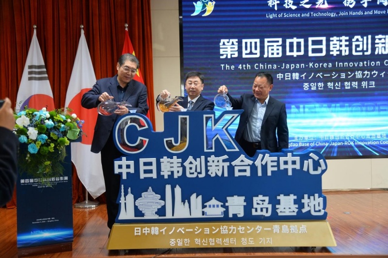 11月5日上午举办了第四届中日韩创新创业大赛暨中日韩创新合作周开幕式,韩国驻青总领馆领事田埈凡、日本驻青总领馆领事森田雅之、青岛市科技局党组成员、副局长于炳波、青岛市民营经济发展局党组成员、副局长江长海、青岛市工商业联合会党组成员、副主席张宣付、市北区副区长刘峰、城阳区副区长宋甜甜、莱西市副市长孔令良等来自三国的100多位嘉宾出席。开幕上,青岛市科技局党组成员、副局长于炳波,青岛市民营经济发展局党组成员、副局长江长海,青岛市工商业联合会党组成员、副主席张宣付共同启动了中日韩创新合作中心青岛基地。据悉,青岛基地将在黑龙江、大连、苏州和海南建立节点合作,在日韩建立光州、大田、京都、奈良的枢纽合作,在中东、中欧筹备创新合作平台。中日韩创新合作中心青岛基地王可锋表示:青岛基地将以科技合作为核心、以全程服务为手段,以青年科技工作者和留学生为依托,以产业落地为目标,为中日韩企业提供知识产权、法律、人力资源、媒体宣传服务,并围绕农业科技、海洋科技、医养健康、航空产业四个产业方向,推动中日韩产业合作纵深发展、形成中日韩+X的青岛特色。