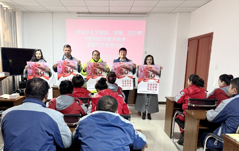 中华传播通讯社新疆讯(通讯员 阿卜力米提·斯依提 排则古丽·图尔孙 文/图)2025年12月1日是第38个“世界艾滋病日”。为进一步提升全站职工及广大司乘人员的防艾意识和健康防护能力,当日,新疆喀什公路事业发展中心英吉沙南收费站联合英吉沙县疾病预防控制中心(县卫生监督所)开展了一场“内强素质、外宣知识”的主题宣传活动。