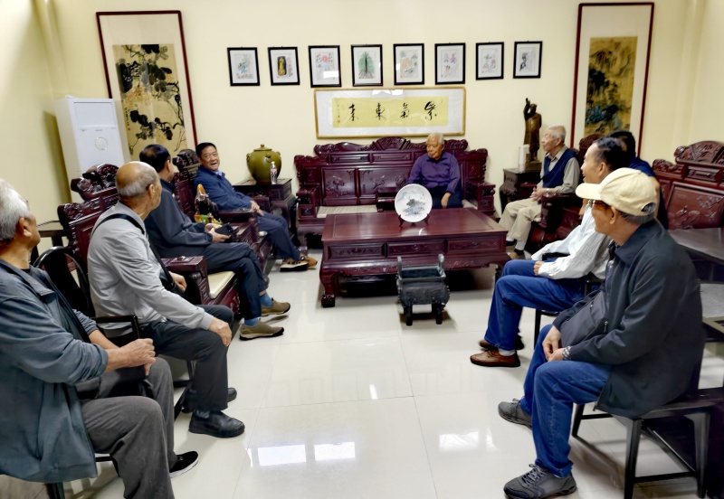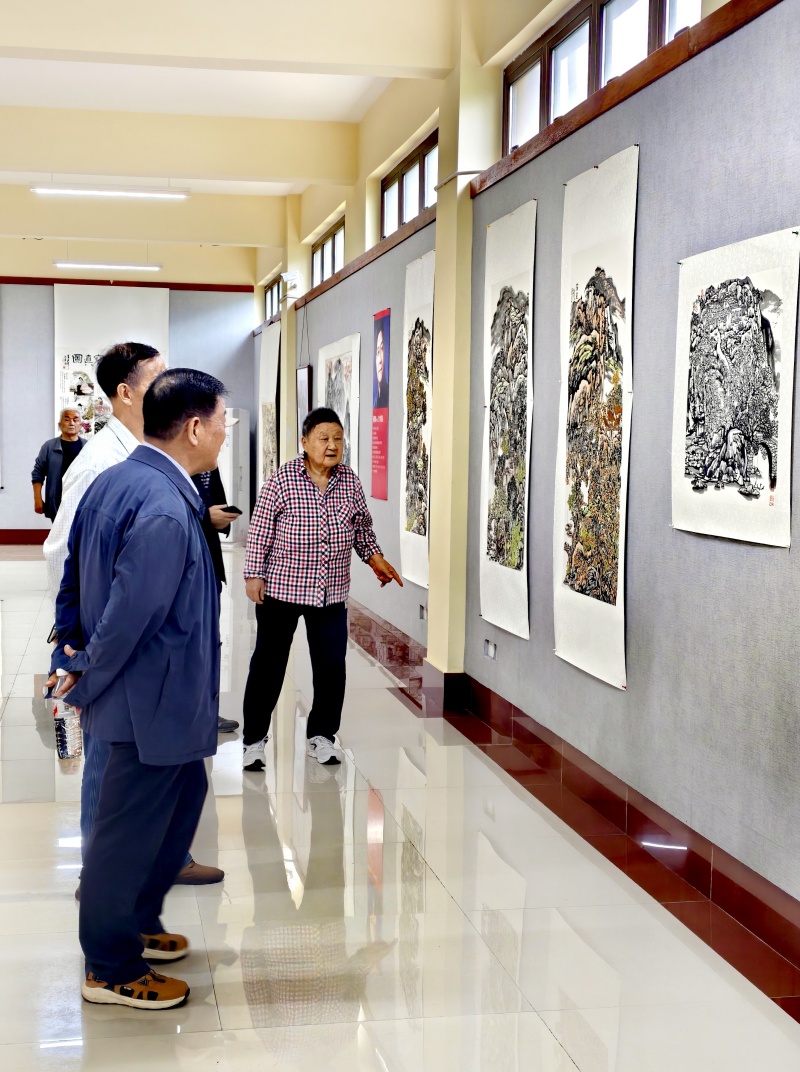 在瑞琴艺术馆,第一党支部老干部们首先共同学习了习近平总书记在纪念中国人民抗日战争暨世界反法西斯战争胜利80周年大会上的重要讲话;支部书记孙景瑞介绍了为庆祝抗战胜利80周年,由6位75岁以上老艺术家和20多位著名中青年艺术家参展“纪念抗战胜利80周年庆国庆沂蒙情”书画名家邀请展筹备过程和9月23日开展情况。大家细致观摩了以鲁南地区抗战史为题材的创作的书画作品。这些作品有的描写115师战斗的沂蒙山区、有的描写当年运河支队战斗过的滔滔运河、有描写铁道游击队战斗过的微山湖芦苇荡等书画作品。