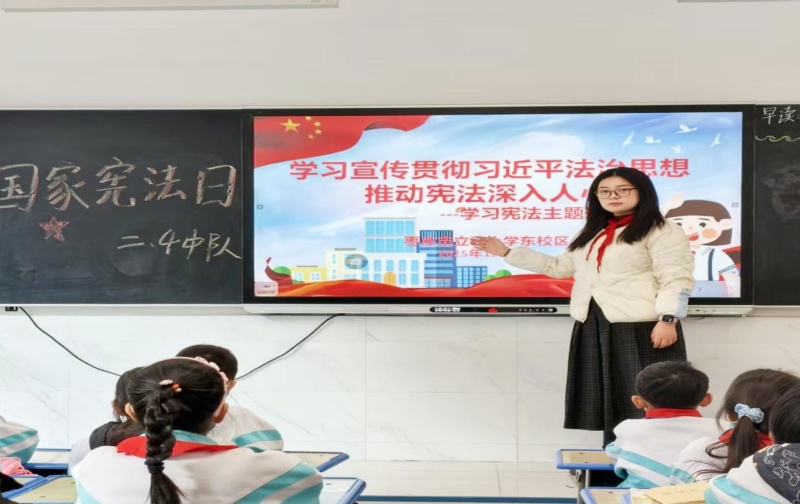 中华传播通讯社山东枣庄讯(记者 王海涛 通讯员 通讯员 王振华)为深入学习贯彻习近平法治思想,全面落实立德树人根本任务,引导少先队员树立正确的法治观念,增强法治意识与自我保护能力,在第十二个国家宪法日来临之际,山东省枣庄市立新小学东校区以“学法懂法守初心,法治精神伴成长”为主题,精心策划系列沉浸式法治教育活动。