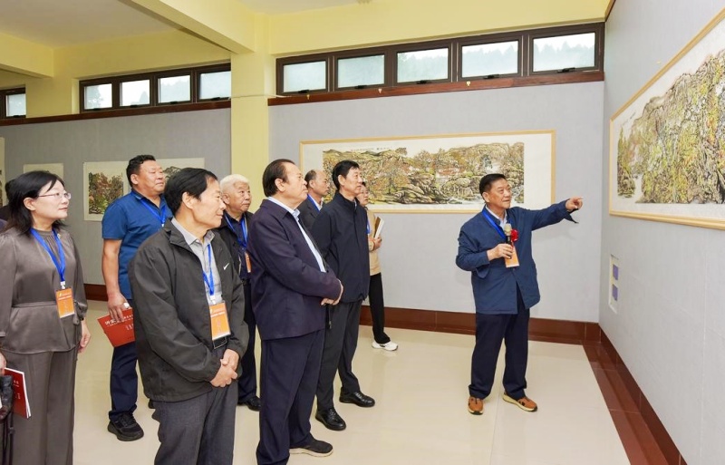 随后,组织参观了位于山东省重点文物保护单位——牛山孙氏宗祠内的文史堂、英烈堂和在瑞琴艺博馆举办的“纪念抗战胜利80周年庆国庆沂蒙情”书画名家邀请展。在牛山孙氏宗祠文史堂和英烈堂,大家重点参观了舍身取义刺杀大汉奸汪精卫的爱国志士孙凤鸣、曾任鲁南军区副司令员和运河支队第一任支队长的抗日英烈孙伯龙、曾任峄县县委书记和运河支队第二任政委的孙振华、曾任运河支队第一任副支队长的孙斌全等数十位牛山孙氏抗日英烈和英雄的英勇事迹、生前遗物、奖章、奖状、嘉奖令、任命书、个人日记、回忆录、传记、珍贵照片以及后人为纪念、缅怀他们英勇事迹和爱国精神而撰写、题写、创作的纪念文章、书法和绘画作品等。在瑞琴艺博馆,大家认真观摩和品鉴了孙景瑞、高龙章、陈力生、张继国、姚永胜、亢文龙等6位75岁以上老艺术家和20余位知名中青年艺术家的抗战题材书画作品。